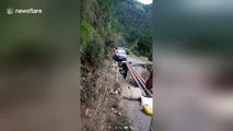 In the clip, shot in Zhaotong City in Yunnan Province on August 5, a 400-metre-long road suddenly collapses as a large section of the mountainside comes loose.