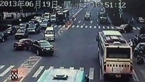 Car flies over overpass in China and smashes into wall after driver accidentally presses accelerator