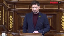 Rufián, a Sánchez: "Si esto es una cosa de tres listos usted se tiene que quedar, pero si esto escala le vamos a obligar a que la gente decida"