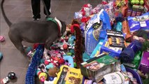 Shelter pets pick out toys from under the tree
