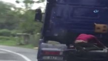 - Ordu’nun Ünye ilçesinde seyir halindeki bir tırın dorse bağlantı noktasında seyahat etmesi, görenleri hem şaşırttı hem de korkuttu. İlçeye bağlı Cevizdere istikametinden Ünye istikametine giden bir tırın dorse bağlantı noktasında seyahat eden bir kişi, görenleri korkuttu. Seyahat eden kişinin, bağlantı noktasında incelemelerde bulunması ve tehlikeli hareketler yapması ise cep telefonu kameraları tarafından kaydedildi. Yaklaşık 50 kilometre hızda seyreden tırda çekilen görüntüler yürekleri ağza getirirken, tedbir alınmaması sonucu meydana gelen kazaların nasıl kaynaklandığını da gözler önüne sermiş oldu.