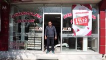 ( SİVAS - ÖZEL)- Sivas'ta çelik kapı satışı yapan esnaf Ahmet Turan Dalkıran firmasının camına astığı pankartla 'Enflasyonla Topyekün Mücadeleye' destek verdi SİVAS