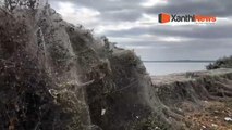 In einem Fischerdorf in Nordgriechenland sind riesige Spinnennetze aufgetaucht.