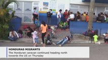 Honduran migrants wait in the Mexican border town of Ciudad Hidalgo for a caravan of several thousand migrants making its way through Guatemala, hoping to travel with them northward in hopes of reaching the United States, as US President Donald Trump threatened to send the military to close the US-Mexican border.