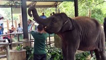 Alimentation au lait d'éléphants en Sri Lanka