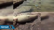Geçen yıl Yunanistan’ın Sisam adasından gelerek, Kuşadası Marina içindeki bir teknenin içine çıkıp uyuyan akdeniz foku, bu kez uyumak için Kuşadası Körfezi’nin bir başka kıyısını tercih etti http://www.cumhuriyet.com.tr/video/video/686439/Gecen_yil_teknede_uyumustu__bu_kez_kayaliklari_secti.html