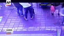 In the CCTV video, captured in Lanzhou City in Gansu Province last Sunday (November 11), a busy sidewalk suddenly collapses underneath a woman walking by, completely swallowing her up.