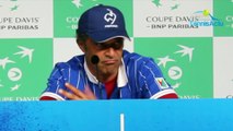 Ce sont les rencontres que le capitaine de l'Equipe de France adorent. Une fois encore, Yannick Noah a su trouver les mots justes avant et pendant la rencontre pour motiver ses joueurs et les aider à aller chercher ce premier point français. Ce fût très dur, mais, Pierre-Hugues Herbert et Nicolas Mahut ont fait preuve de caractère pour relancer les Bleus et redonner le sourire aux supporters et au clan tricolore grâce à leur victoire 6-4, 6-4, 3-6, 7-6(3) contre la paire croate composée d'Ivan Dodig et Mate Pavic. Inutile de dire que le capitaine des Bleus est passé par toutes les émotions durant ce match surtout après le gain du troisième set par les Croates alors que les Bleus avaient eu la possibilité de double-breaker à 2-0. Mais, malgré le coup de massue infligé par les Croates vendredi en gagnant les deux simples, Noah a eu les ressources pour tirer le meilleur du double tricolore qui bien que favori avant la rencontre, ne partait pas dans les meilleures conditions. Le plus dur est à venir pour Yannick Noah qui devra maintenant chosiir la bonne option dimanche et surtout gonfler ses joueurs à bloc pour créer l'exploit face à Marin Cilic et Borna Coric...