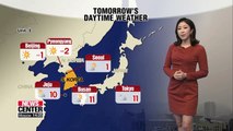 The daytime high in Seoul will top out at 7 degrees, while the southern regions will reach the mid-teens.
