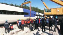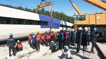 몇 개는 90도로 꺾여버리고 10개 차량인데 그중에 9개 정도가 다 탈선을 했습니다. 그래서 지금 저걸 차량기지로 옮기고 그다음에 철로를 복구하고 다시 전기가 들어가도록 만들어야 하거든요, 철로에. 이런 데에 시간이 걸리는 것이고요.