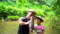 Collecting fish from Arunachali bamboo fish traps in Simang river or early Brahmaputra - Aerial view