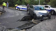 Yol çöktü, otomobil çukura düştü