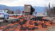 ( BURSA )- 15 ton hamsi dökülen karayolu ulaşıma kapandı BURSA