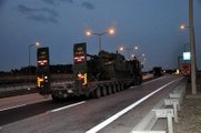 Türk Silahlı Kuvvetleri (TSK) tarafından Türkiye'deki çeşitli birliklerinden gönderilen iş makinesi ve konteynerlerin yer aldığı konvoy, Suriye sınırındaki askeri birliklere sevk edildi.