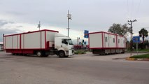 Suriye sınırındaki birlikler için gönderilen iş makinesi ve konteyner yüklü araçlar Hatay'a ulaştı.