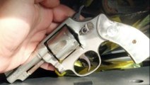 Arma apreendida em ocorrência no Riviera é levada para a delegacia