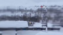 Kar yağışının başlaması araç içinden hareketli görüntü