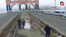 Kırgızistan, (DHA) ? Kırgızistan'da düğün çekimi sırasında kayıtta olan bir drone, yaşanan bir kazayı da görüntüledi. Görüntülerde, trafikte ilerlemekte olan kırmızı bir otomobilin sürücüsünün kontrolü kaybettiği ve şehir girişindeki kemere çarptığı görülüyor. Kazayı gören düğün davetlileri yardım etmek için hemen kazazedelerin yanına gidiyor ve ambulans gelene kadar kazazedelere ilk yardımda bulunuyor. Ambulansın olay yerine gelmesiyle otomobil sürücüsü ve bir yolcusu hastaneye kaldırıldığını bildiren yetkililer, kaza hakkında bir araştırma başlatıldığını da duyurdu. Haber