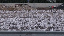 Lodostan kaçarak otoparka sığınan binlerce martı havadan görüntülendi