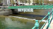 Konya'nın Beyşehir ilçesinde kamyon ve otomobille çarpışan öğrenci servisi kanala uçmaktan kıl payı kurtuldu
