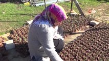 -Gülizar gözüsarı bahçesinde çiçek fidelerine bakım yapıyor