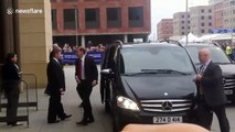 Hillary Clinton is booed as she arrives at Swansea University