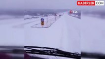 Ekipler tarafından yoğun kar altında yapılan karla mücadele çalışması ise havadan görüntülendi. (SRD-AKK-Y)