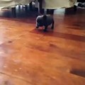 A French Bulldog puppy learning to walk on hardwood floor...