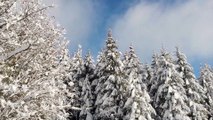 La montée sur la route enneigée vers la piste du Schlumpf qui ouvre ce week-end sur les hauteurs de Dolleren.