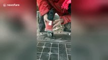 The impressive clip, shot in Chuzhou City in eastern Anhui Province on February 1, shows the skilful man named Su Bao'an expertly carving a famous Chinese poem with an electric grinder on a stone slab.