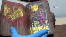 Deri ciltli ve erguvan renkli yaprakları olan kitaplarda altın yaldızlı işlemelerin de dikkat çektiğine işaret eden Bayram, şu bilgileri verdi:"Bu tefsirlerde Hz. İsa'nın doğumundan ölümüne kadar hayatından kesitler ele alınmış. Hz. İsa'nın Meryem Ana'ya müjdelenişi, Hz. İsa ile Meryem Ana'nın buluşma figürü, Hz. İsa'nın aranışı ve ardından üç müneccimler tarafından bulunuşu, Hz. İsa'nın Mısır'a kaçışının tasvirleri yer alıyor.Diğer kitaplarda ise dünyayı çeviren burçlar ve astronomi bilgileri, çift başlı kartal, ölen kişilerin ruhları ile ilgili konular yer alıyor. Ayırca bir kitapta Shakespeare'in Hz. İsa'yı anlattığı bir eserinin tasvir edildiğini gördük."Kitapların üzerinde kayıt olmadığını, bazı bölümlerinin kesildiğini gözlemlediklerini aktaran Bayram, "Bir müzeye ait envanter numaraları olduğu için kesilmiş olabilir, ondan emin değilim. Son yıllarda Suriye'deki müzelerden çok sayıda eser kaçırıldı. Özellikle Türkiye'de çok sayıda el yazması ele geçiriliyor. Bu nedenle o bölgeye ait olabilir. Sadece yazılardan oluşan kitaplar da Aramice yazılmış ve dolayısıyla o bölgeye ait." diye konuştu