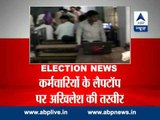 After Congress's Ajay Rai was seen sporting the party symbol inside the poll booth, more allegations of violation of the Model Code of Conduct have come to the fore in Poorvanchal. While the last phase of voting was on, the Bharatiya Janata Party has objected to UP Chief Minister Akhilesh Yadav's picture on the laptop of a poll officer in Chandauli.