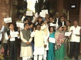 The Left Parties staged a protest in the Parliament premises on Friday demanding a high-level investigation into Lalit-Gate and the Vyapam scam in Madhya Pradesh. "We want an inquiry be conducted into Lalit Modi gate and the Vyapam scam. The concerned ministers should resign until the inquiry is completed," CPI (M) leader Sitaram Yechury said.