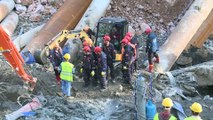 - Olay yerinden detay görüntüler İzmir 'de metro vagonu yer altı park alanı inşaatında göçük - Konak ilçesinde yapımı devam eden metro vagonu yer altı park alanının inşaatında göçük meydana geldi - Göçük altında kaldığı tahmin edilen 2 bekçiyi arama çalışmaları başlatıldıİZMİR (AA) - İzmir 'de metro vagonları için yapılan yer altı park alanının inşaatında göçük meydana geldi.Konak ilçesi Halkapınar Spor Salonu önünde yapımı devam eden İzmir Büyükşehir Belediyesine ait metro vagonu yer altı park alanının inşaatında, sabaha karşı göçük olduğu bilgisi üzerine, yüklenici firma ve belediye yetkilileri olay yerine geldi.İnceleme yapan ekipler, gece görevli olan 2 bekçiden haber alamayınca durumu polis, itfaiye, AKS ve AFAD ekiplerine bildirdi.Bölgeye gelen ekiplerin, 2 bekçiyi arama çalışmaları sürüyor.Olay nedeniyle Şehitler Caddesi ve Halkapınar Köprüsü tek yönlü olarak trafiğe kapatıldı. Göçüğün yayılma riskine karşı hafriyat dolgusu çalışmaları başlatıldı.Polis ekipleri de geniş bir alanda güvenlik önlemi aldı.Öte yandan olay yerinden görüntü almaya çalışan basın mensupları, görevliler tarafından engellenmeye çalışıldı.