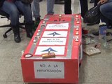 Más de un centenar de trabajadores del sector de mercancías de Renfe se ha concentrado frente al Ministerio de Fomento convocados por el sindicato CGT para protestar contra la privatización generalizada de Renfe, la externalización de los trabajadores y el desmantelamiento del ferrocarril.