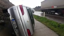 KAHRAMANMARAŞ - Kahramanmaraş'ta sabah saatlerinde etkisini artıran şiddetli yağmur nedeniyle bir otomobil yoldan çıktı, bir kamyonet devrildi.