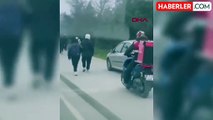 Sürücüler doludan korunmak için kaldırıma park etti