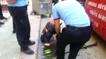 Demir mazgala sıkışan yavru kedi itfaiye ekipleri tarafından kurtarıldı