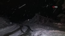 Ekipler, kar yağışı altında çığ düşen bölgeleri temizliyor