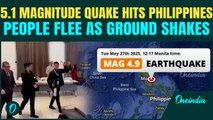 Terrifying footage shows swimming pool water cascading from the top off a penthouse apartment block in the Philippines this afternoon when a 6.4 magnitude earthquake struck killing at least five people.