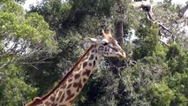 Footage captured shows the giraffe bouncing inside a bushy tree as it tries to scratch an itch.