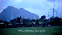 Renewable energy sources in South India. Windmills in Kerala state, along the coastline of south India. Non-conventional energy for the new era of climate change and global warming! Environmentally friendly energy is produced with the aid of many windmills in Kerala.
