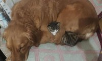Poşetle çöpe atılan 3 kedi yavrusuna bir köpek annelik yapıyor