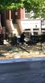 Ce motard à l'arrêt assommé par un panneau de passage piéton !