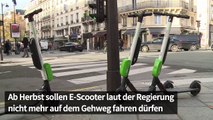 Elektro-Kleinroller dürfen in Frankreich bald nur noch auf der Straße fahren: Ab Herbst sollen E-Scooter laut der Regierung nicht mehr auf dem Gehweg unterwegs sein dürfen. So sollen Unfälle mit Fußgängern vermieden werden. In Deutschland sollen laut der Bundesregierung langsamere Modelle künftig auf Gewegen gefahren werden dürfen.