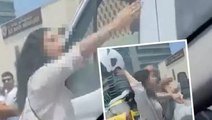 Trafikte sıkıştırdığını iddia ettiği kamyon şoförüne kaskıyla saldırdı