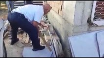 İTFAİYE EKİPLERİ TARAFINDAN YAKALANAN YILAN