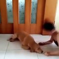 Ce chiot n'aime pas du tout les bisous. Regardez ce qu'il fait !