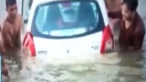 A mystery white foam bursting out of sewage pipes submerged streets in a city in northern China.