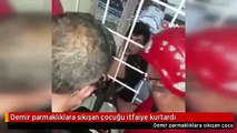 Demir parmaklıklara sıkışan çocuk kurtarıldı